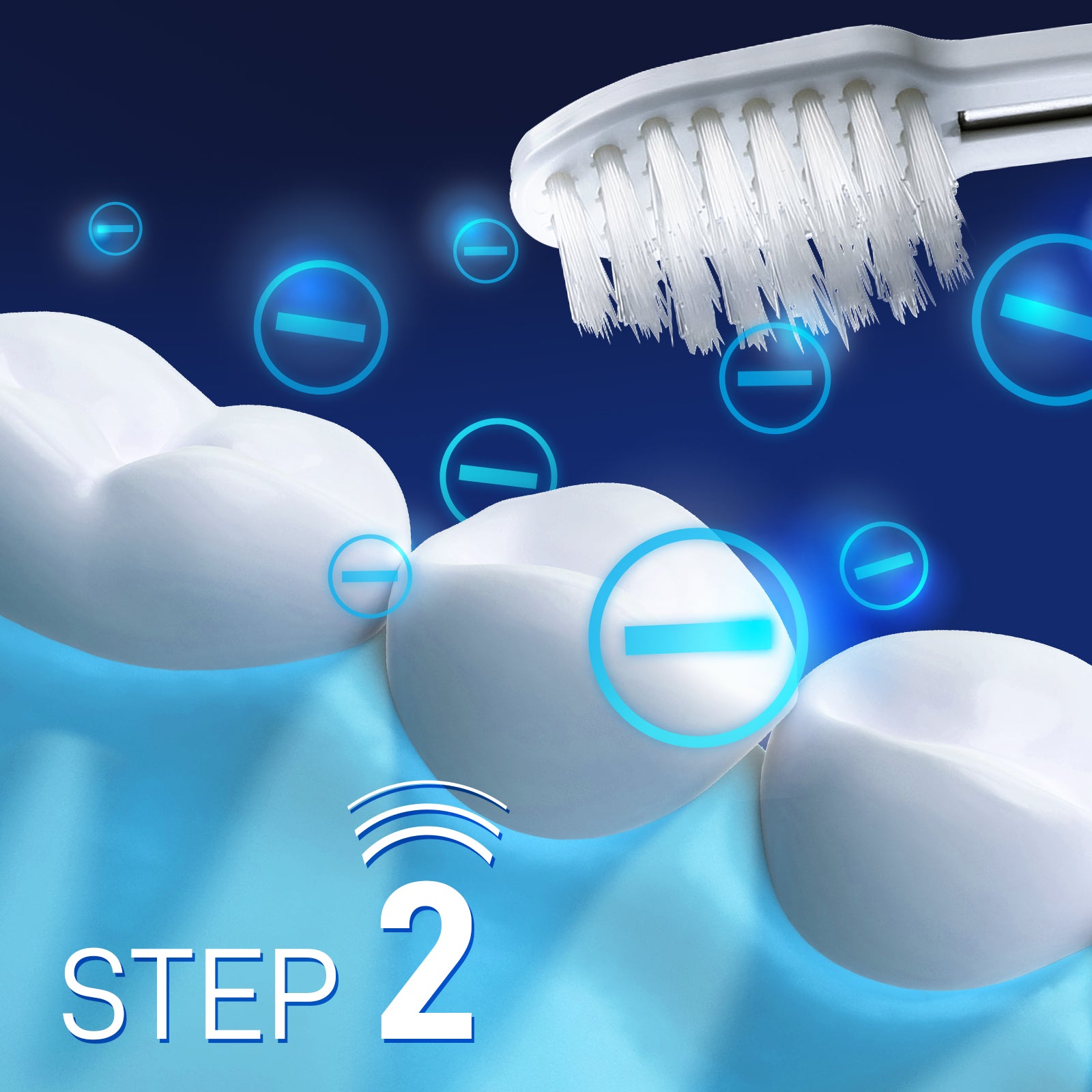 The combination of ION Power + Sonic Action will gently and effectively lift and remove plaque and food particles.